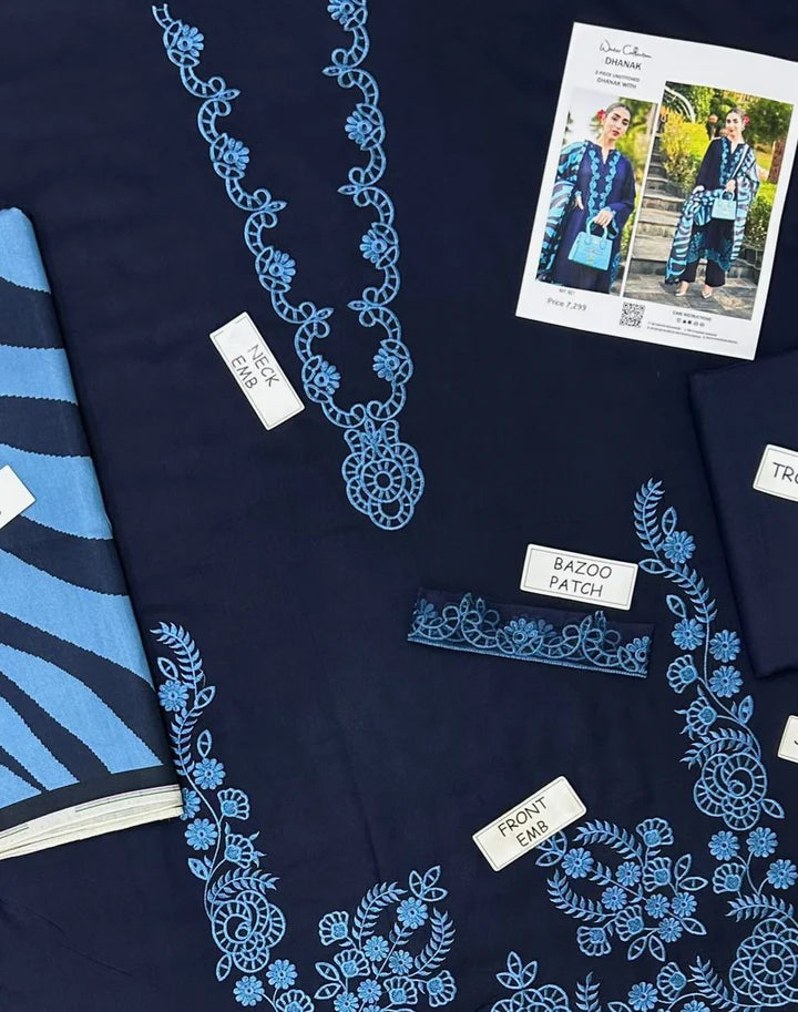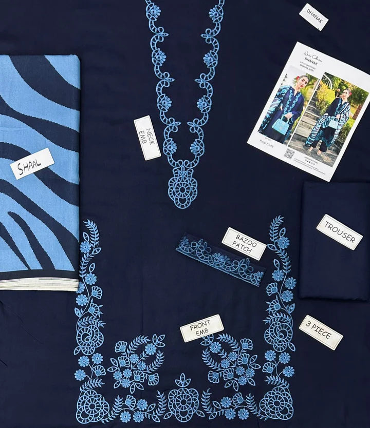The Aneela Dhanak Embroidered 3 Piece | AN109 is a vibrant expression of sophistication and charm, blending traditional artistry with a modern color palette. Crafted from high-quality dhanak fabric, this ensemble promises warmth, comfort, and effortless elegance — perfect for winter gatherings, evening events, or festive occasions.