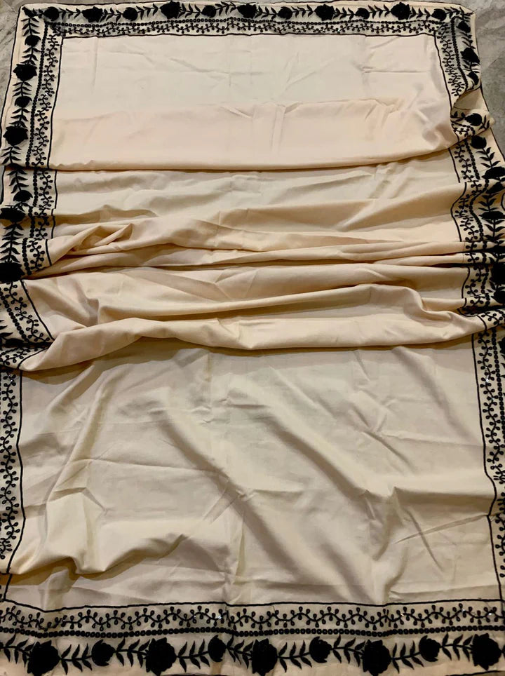 The Charizma Dhanak Embroidered 3 Piece | CA101 is a chic and elegant design that captures the perfect balance between simplicity and sophistication. This three-piece outfit features a black base enhanced with delicate white floral embroidery on the neckline, hem, and sides of the shirt, giving it a graceful contrast and timeless appeal. The embroidery work highlights the finesse of traditional craftsmanship while maintaining a modern touch. The shirt is designed with a straight cut and slightly flared sleeves, making it comfortable yet stylish for both casual and semi-formal occasions.
